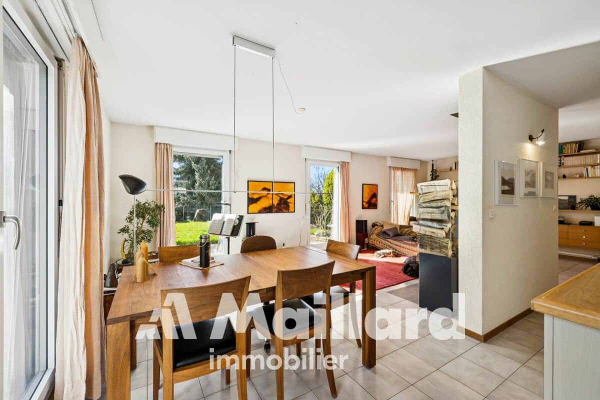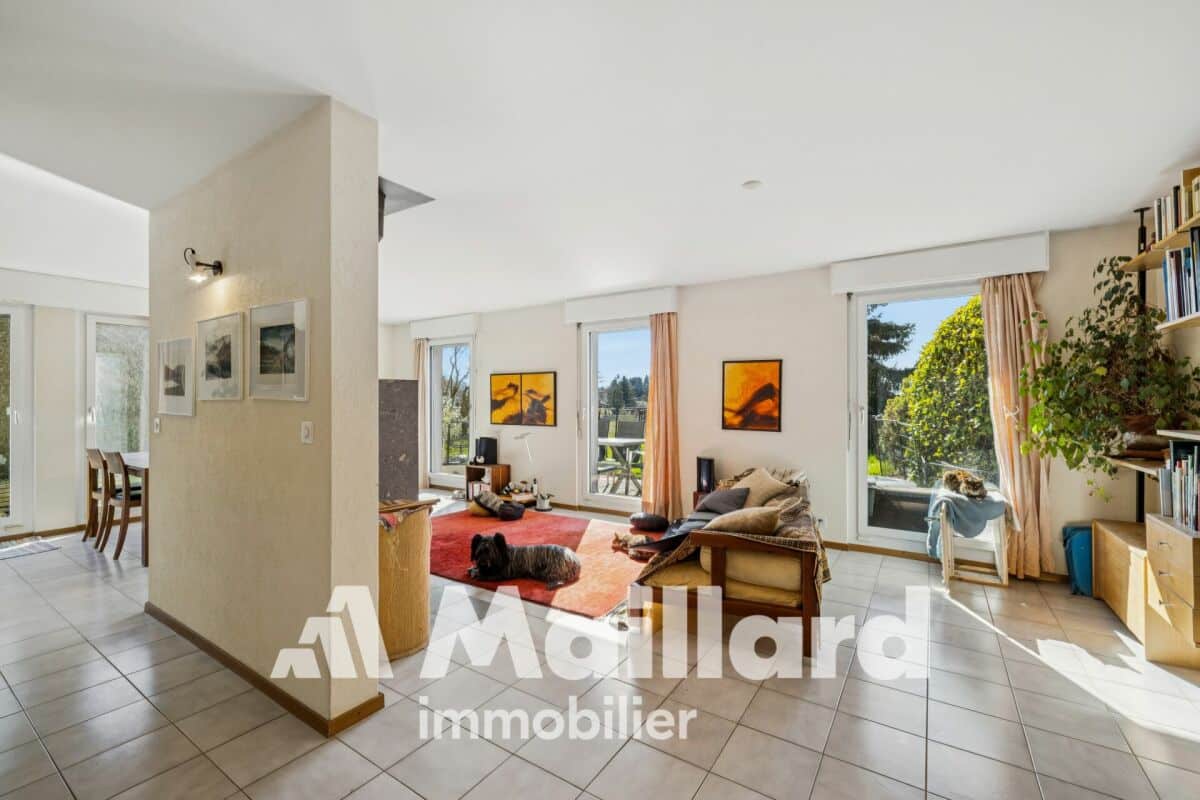 Spacieux séjour baigné de lumière avec accès direct à la terrasse et au jardin privatif