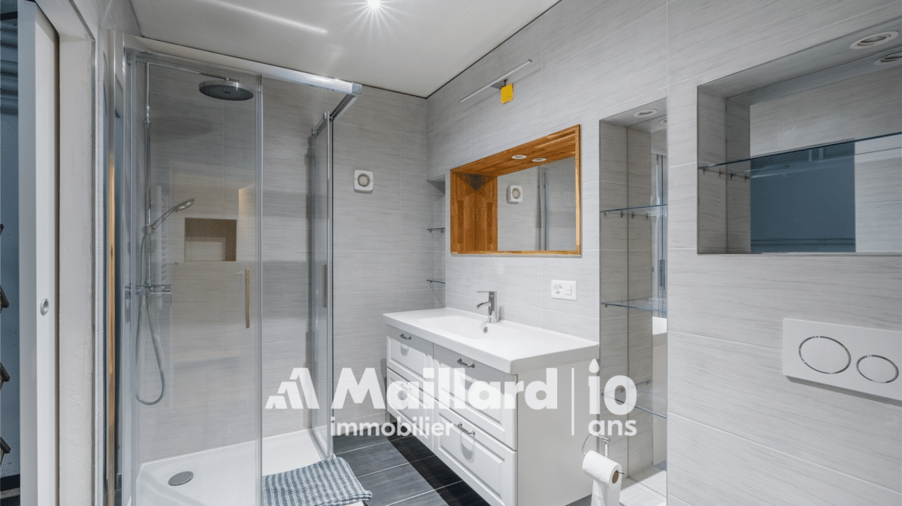 Le rez inférieur propose une seconde salle de bains avec douche ainsi qu'une buanderie privative.
