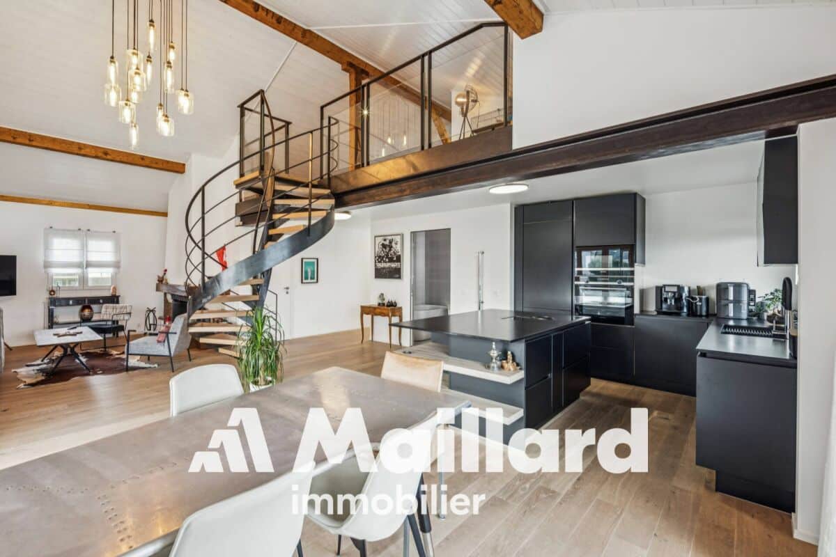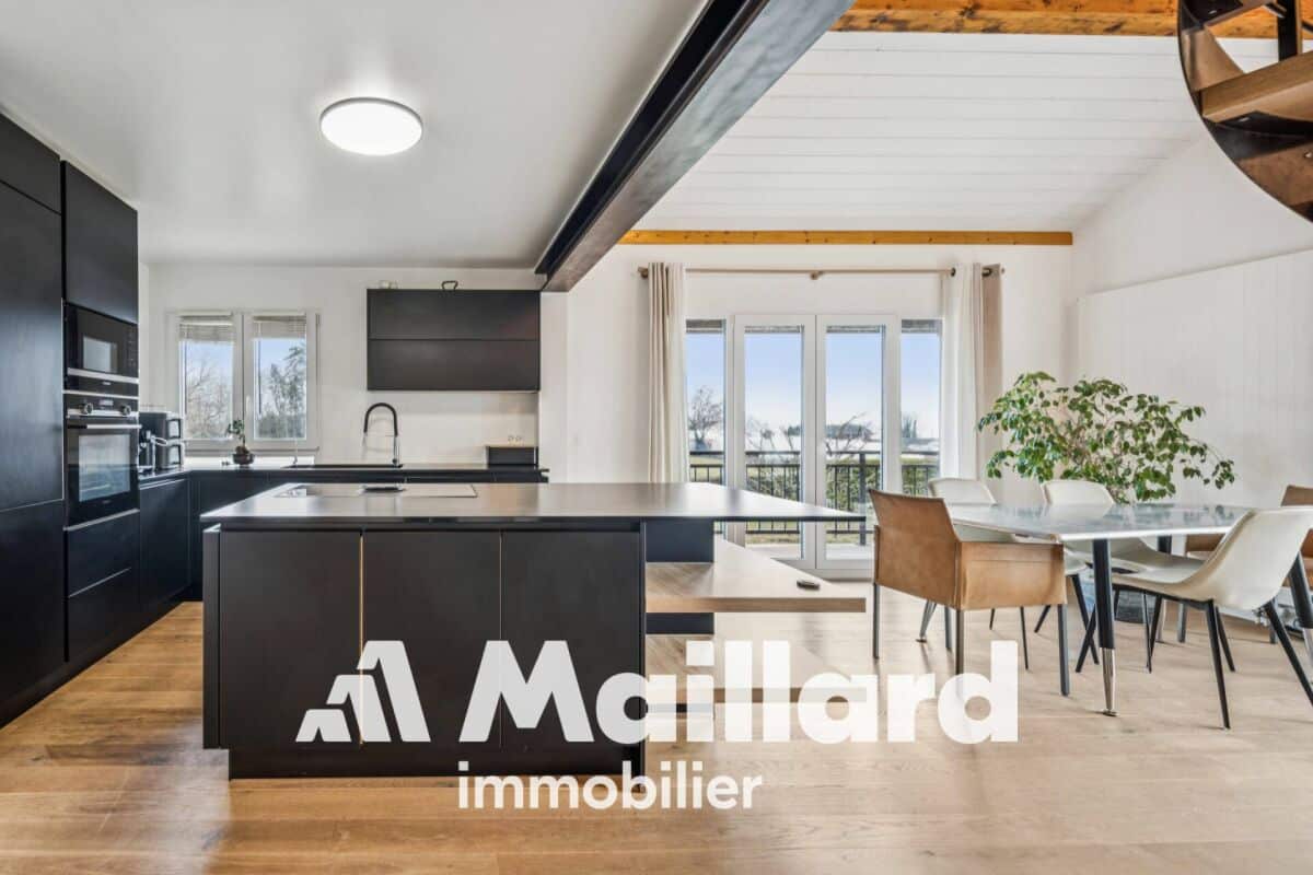 Il propose un vaste séjour baigné de lumière grâce à son orientation sud/est, ouvert sur une terrasse de 42 m² avec belle vue dégagée sur le lac, une cuisine contemporaine entièrement équipée, trois chambres spacieuses dont une suite parentale avec salle de bain privative, dont 49 m² de combles aménagés offrant un espace polyvalent supplémentaire.