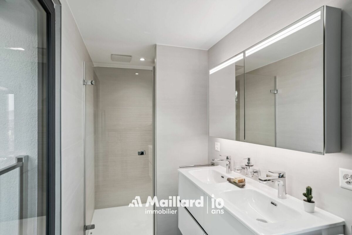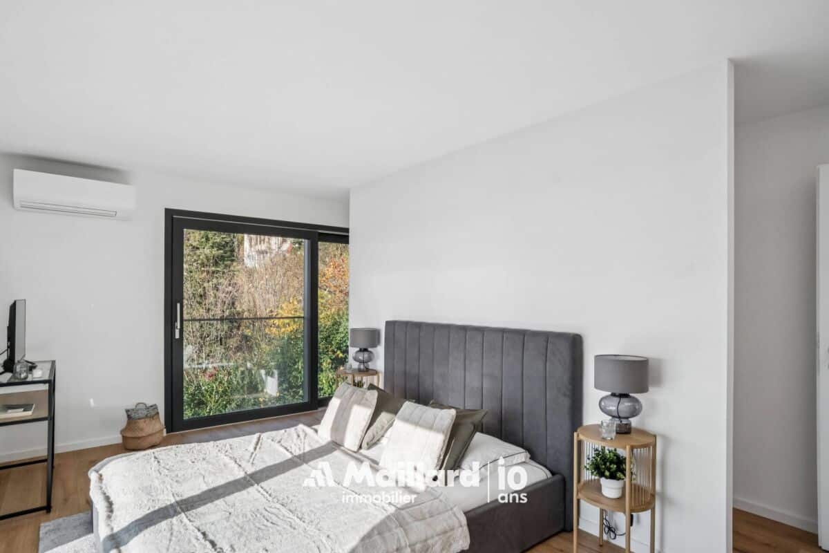 La partie nuit propose trois chambres spacieuses, dont une suite parentale avec salle de douche attenante. Les deux autres chambres bénéficient d'une salle de bain élégante, aménagée avec des matériaux de premier choix.
