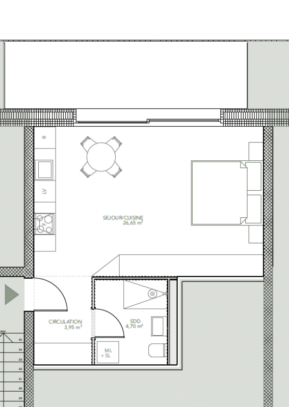 Ce studio sera situé au deuxième étage et bénéficiera d'une très belle vue sur la lisière de forêt.