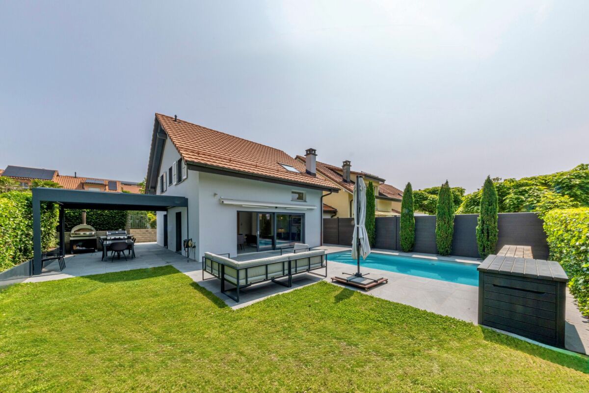 Le jardin, soigneusement aménagé, offre une belle terrasse agrémentée d'une pergola bioclimatique de dernière génération, idéale pour profiter des beaux jours. Une belle piscine vient compléter ce superbe espace extérieur.