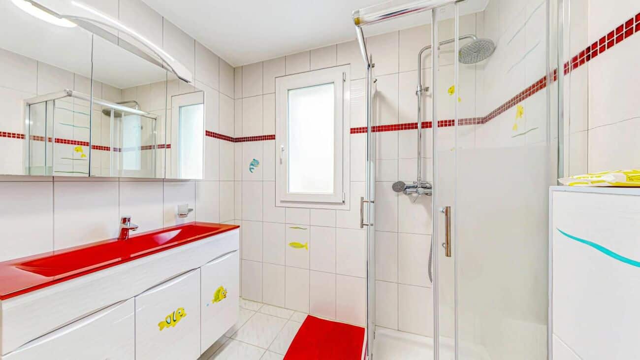 - À l'étage, trois grandes chambres aménagées d'armoires sur mesure, fabriquées par un artisan local, ainsi que deux salles de bains pour offrir confort et intimité à toute la famille.