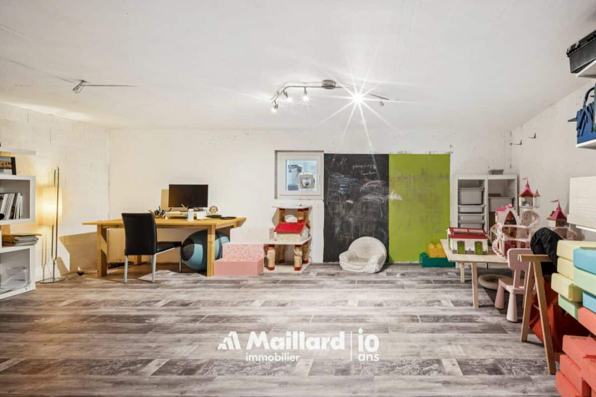 Le sous-sol, entièrement excavé, accueille un local technique, une cave, une buanderie, un carnotzet ainsi qu'un spacieux disponible de plus de 43m² offrant de multiples possibilités d'aménagement.