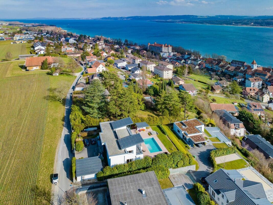 Implantée dans un environnement calme, cette propriété profite d'un cadre de vie paisible, tout en restant à proximité immédiate des commodités locales, des écoles, des transports et des axes principaux. Les rives du lac de Neuchâtel sont accessibles en quelques minutes à pied.