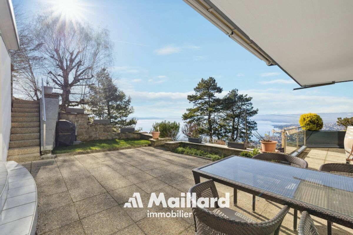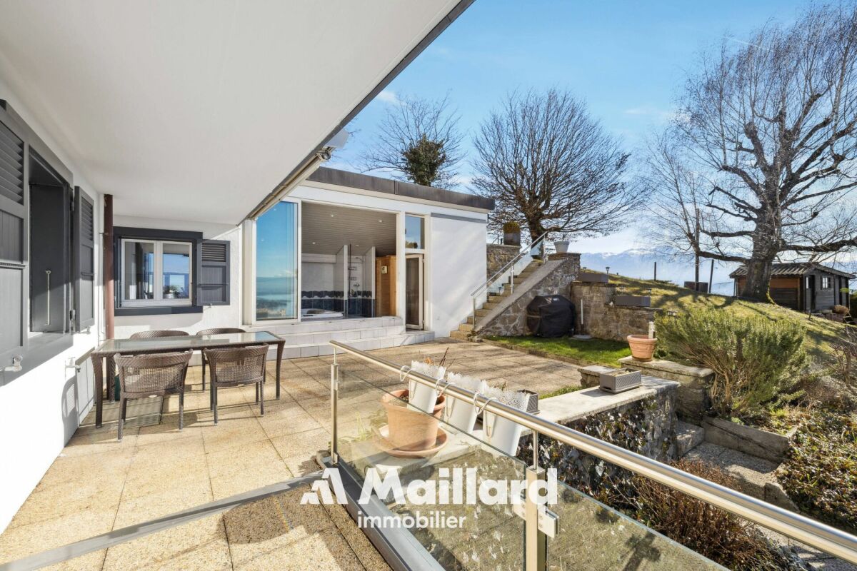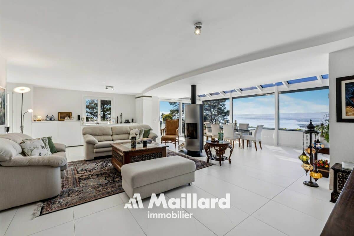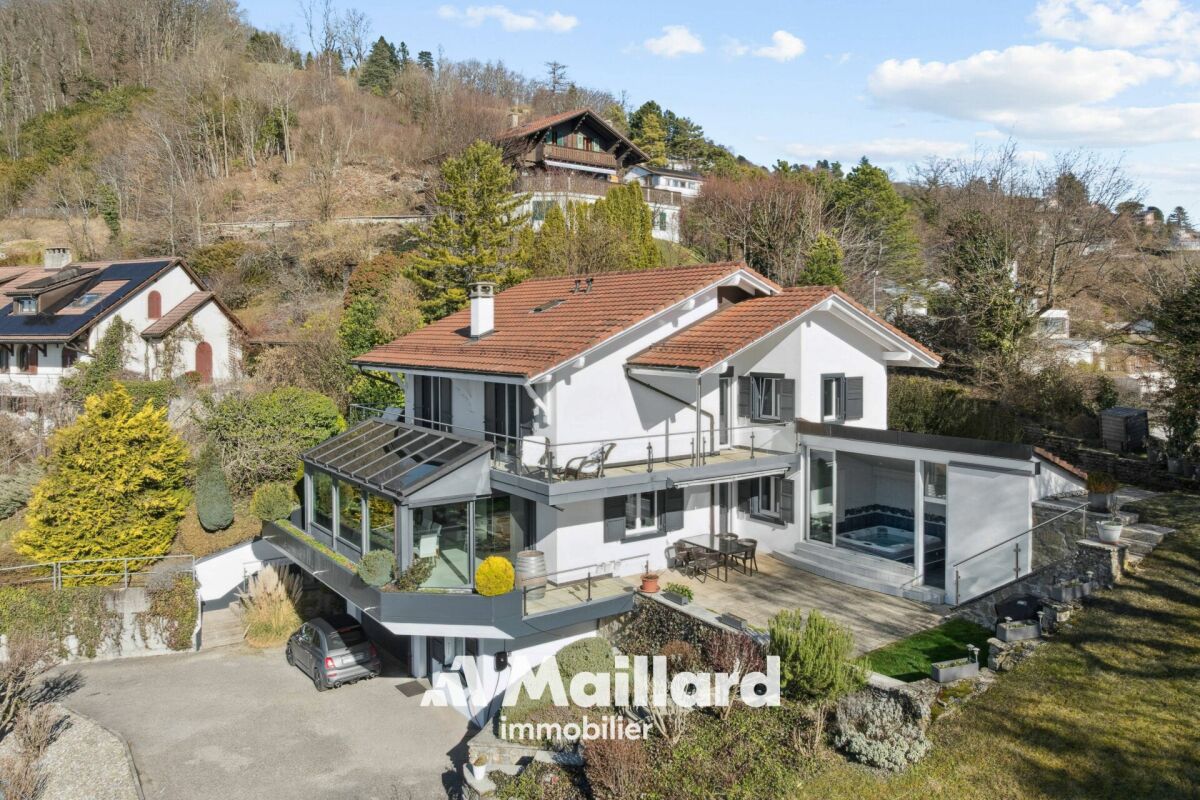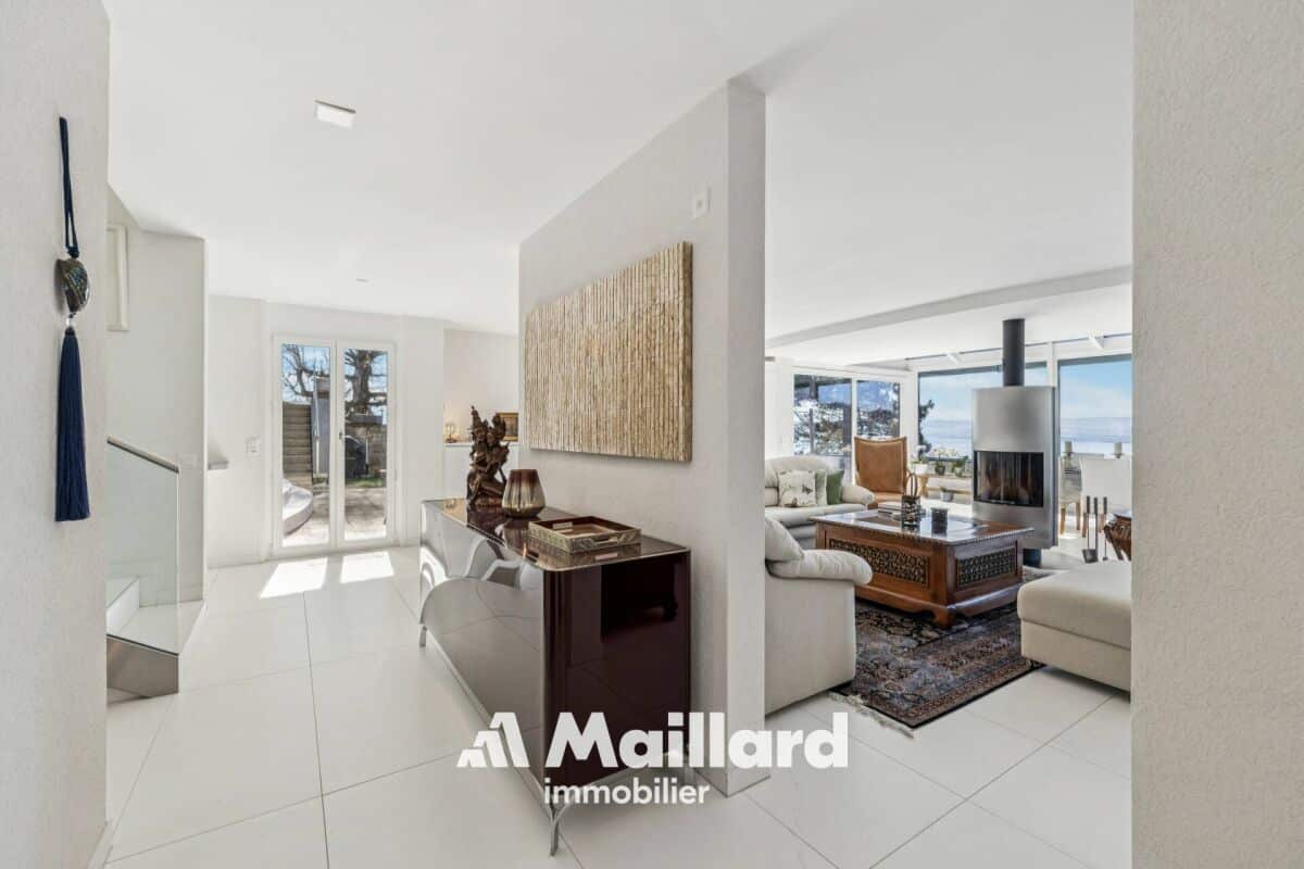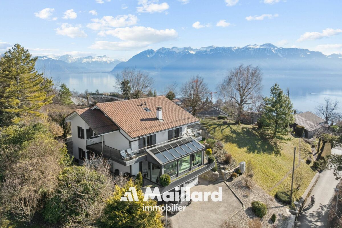 Nestled in a privileged setting, this sumptuous fully renovated home unfolds over three levels and offers spectacular panoramic views of the lake and the surrounding mountains.