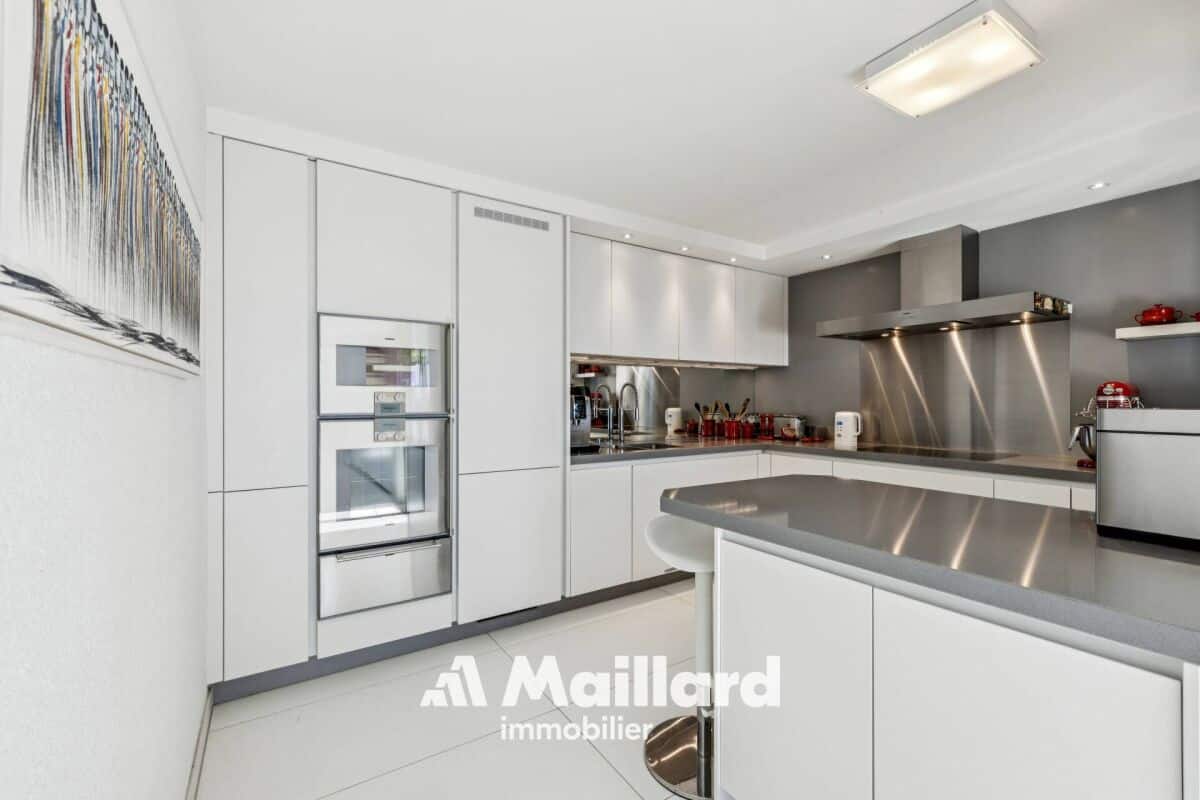From the moment you step inside, natural light enhances the reception areas. The spacious living room, extended by an elegant dining area, opens generously onto the outdoors, allowing you to fully enjoy the breathtaking panorama. The contemporary kitchen, with its refined finishes, combines aesthetics and functionality.