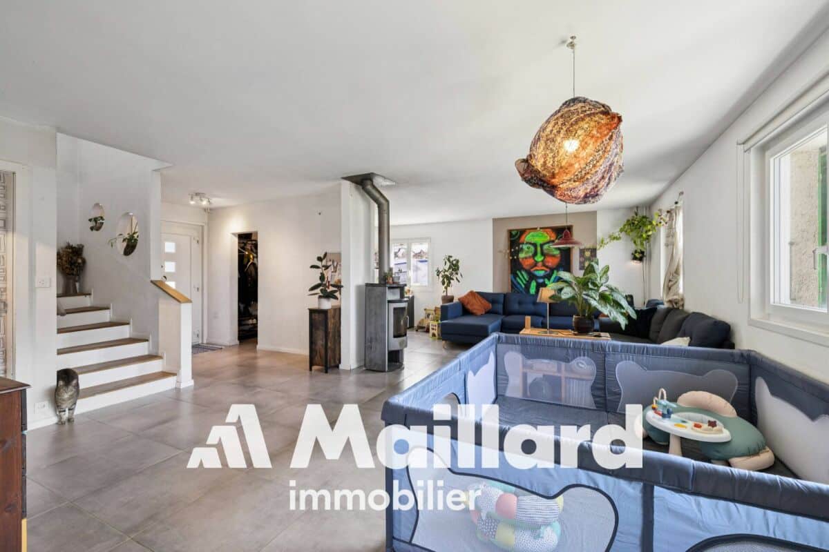 - Un grand séjour avec poële de plus de 40 m² et une cuisine ouverte avec coin à manger de plus de 20 m²