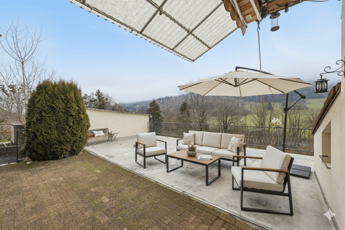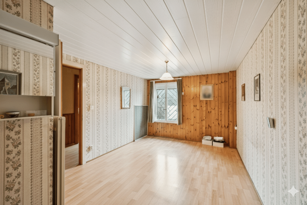 Le bien nécessite une rénovation complète (cuisine, sanitaires, sols, peinture, isolation, fenêtres, système de chauffage à moyen terme), l'occasion parfaite de créer un intérieur sur mesure, moderne et adapté à vos besoins.