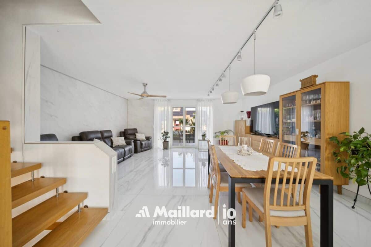 La PPE a été construite en 2009 et le logement a été rénové en 2023. Il est réparti sur 2 niveaux + sous-sol et compte 3 chambres, 3 salles d'eau, une cuisine généreusement agencée - ouverte sur le séjour - et de nombreux rangements. Entretenu avec beaucoup de soin, ce bien ne nécessite aucun travaux.